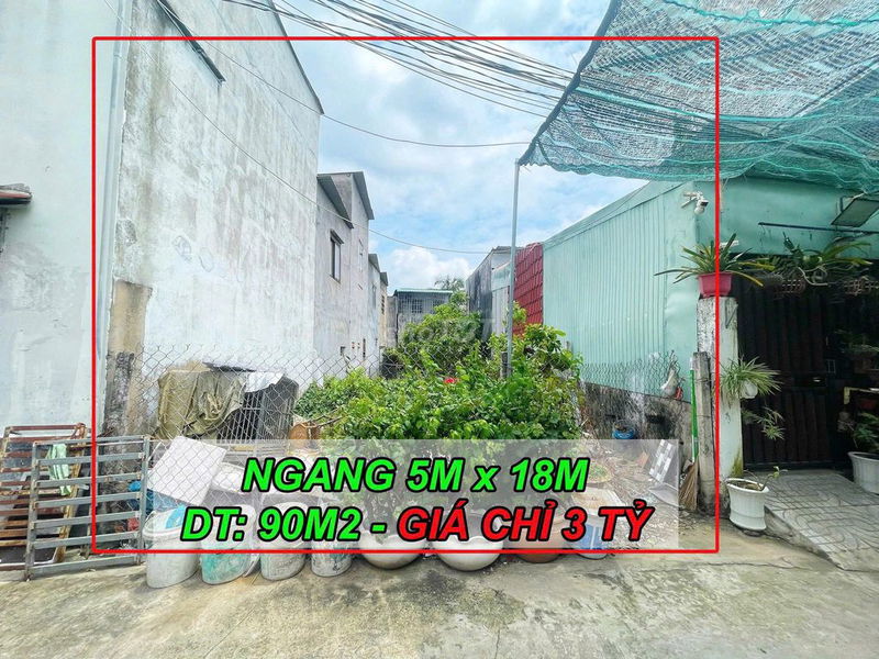 Với diện tích đất 90 m² (5x18m), vị trí thuộc đất thổ cư, có sổ hồng riêng và hẻm xe hơi, giá bán đưa ra là 3 tỷ đồng tương đương khoảng 33,33 triệu đồng/m².