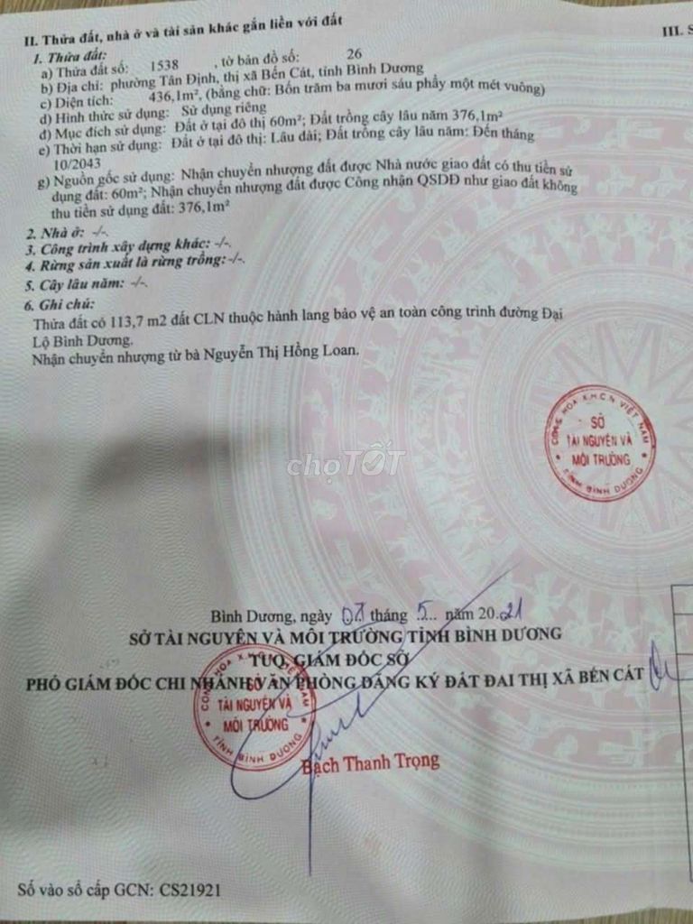 | Quốc Lộ 13, Phường Tân Định, Bến Cát | 436 | 14,91 | 6,5 | Mặt tiền, gần khu du lịch Đại Nam, thổ cư, có sổ | 2024 |