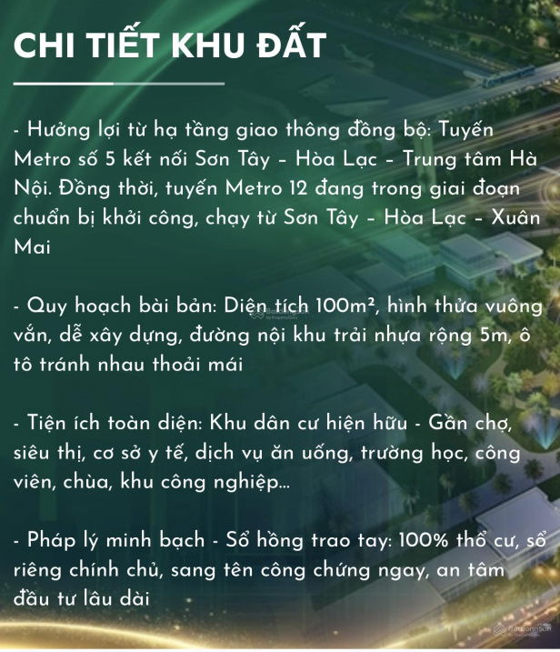 | Khu vực lân cận Hòa Lạc (đất thổ cư, sổ đỏ) | 90 – 110 | 1.8 – 2.3 | 20 – 22 | Giá thị trường trung bình |