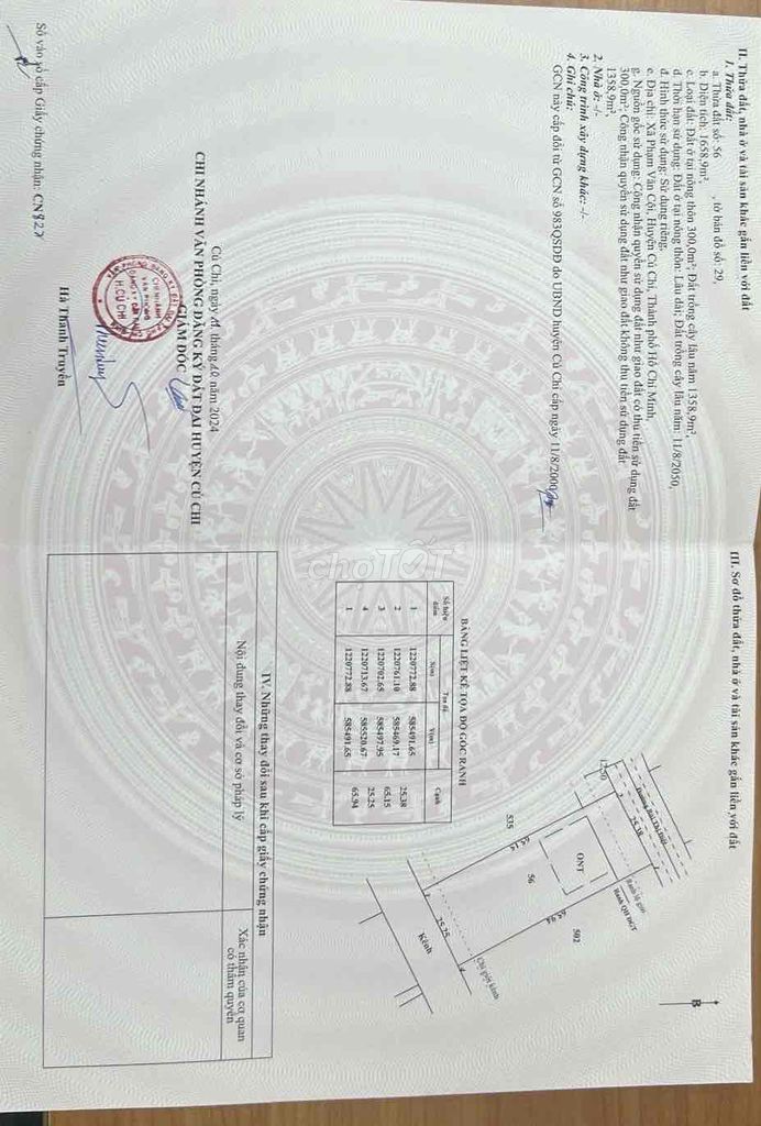 Với diện tích đất rộng 1.659 m², nhà cấp 4, mặt tiền 25,38 m, thuộc huyện Củ Chi, Tp Hồ Chí Minh, mức giá 11,39 tỷ đồng tương đương khoảng 6,87 triệu/m² được chủ nhà đưa ra là khá cao trong bối cảnh thị trường bất động sản tại Củ Chi hiện nay.