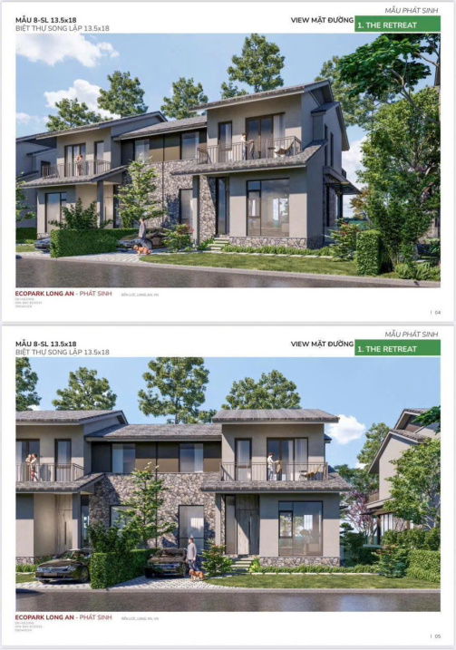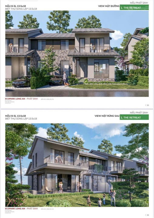 | Eco Retreat Long An – Biệt Thự Rừng (ước tính) | Biệt thự song lập/đơn lập | 220 – 576 | 25 – 35 | 5,5 – 20,2 | Phân khu VIP, gần hồ, mật độ thấp, tiện ích cao cấp |