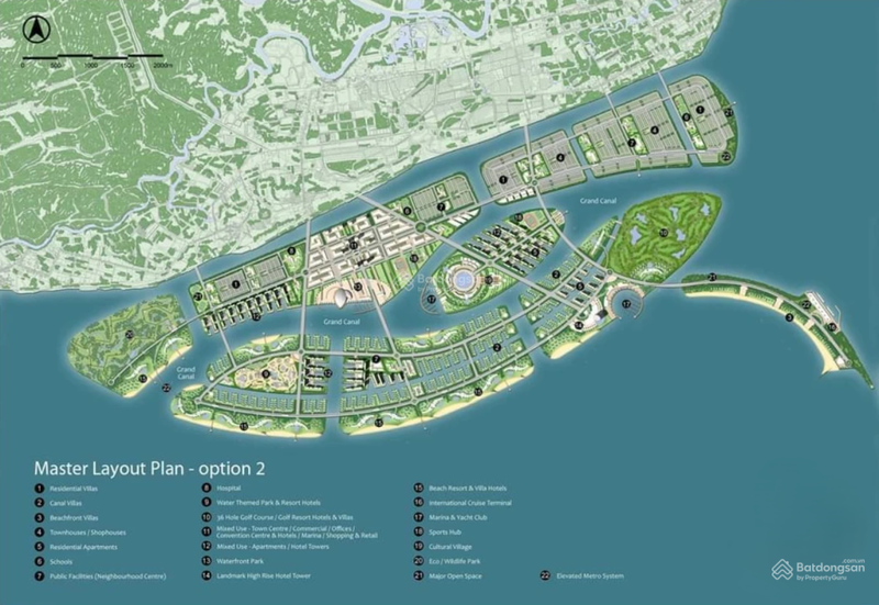 Phân khu đa chức năng: khu ở, nghỉ dưỡng, tài chính, thương mại, cây xanh, hồ nước.