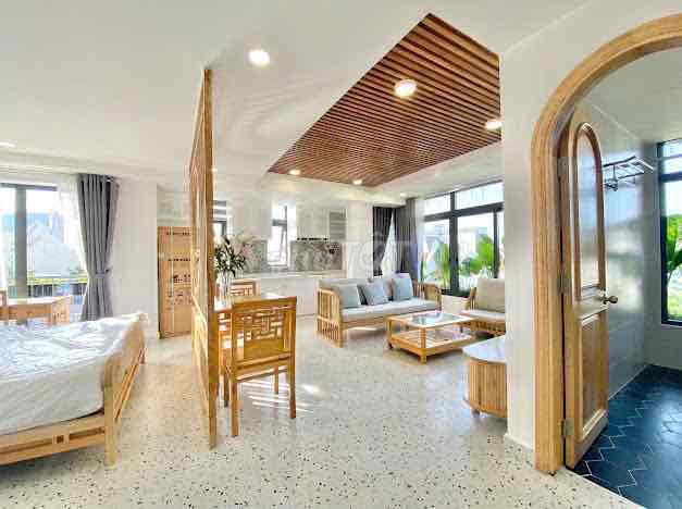 - Full nội thất gỗ tông ấm, decor hiện đại là điểm cộng lớn, giúp người thuê không phải đầu tư thêm, tiết kiệm chi phí ban đầu.
