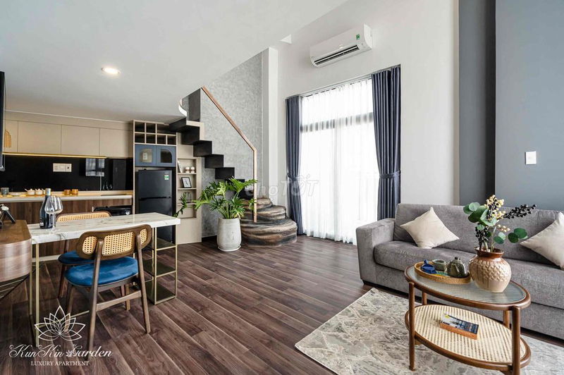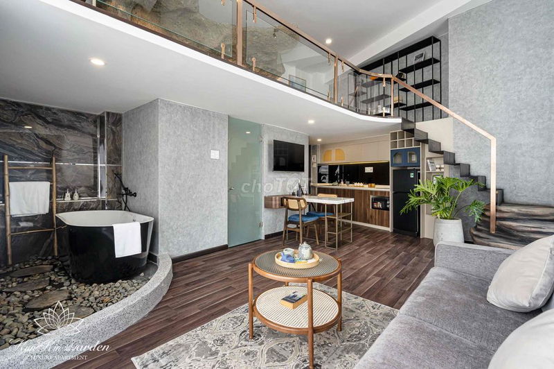 Về kết cấu, đây là căn hộ dịch vụ mini, thường thiết kế nhỏ gọn, phù hợp người độc thân hoặc cặp vợ chồng trẻ. Nội thất full cao cấp, có máy giặt riêng trong phòng, hồ bơi và gym chung cư là điểm cộng về tiện ích.