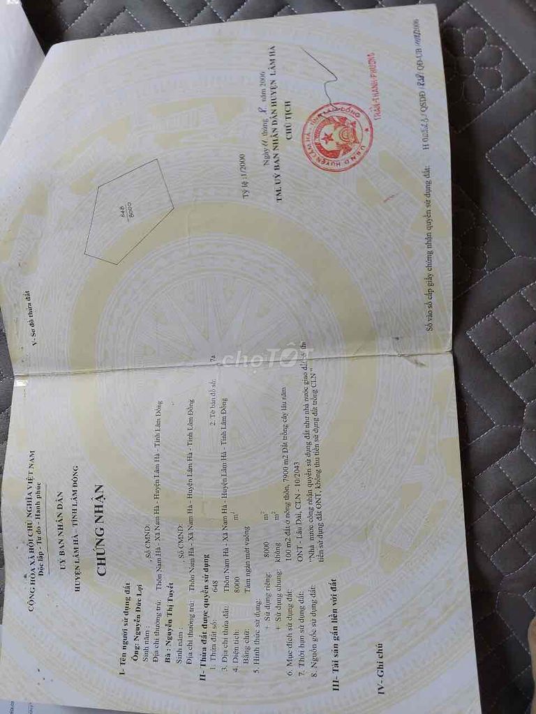 Giá đề xuất: 3,5 tỷ đồng tương đương khoảng 437.500 đ/m² cho đất thổ cư có diện tích lớn 8000 m², mặt tiền rộng 40m, chiều dài 200m, hướng Đông Bắc, thuộc xã Nam Hà, huyện Lâm Hà, tỉnh Lâm Đồng.