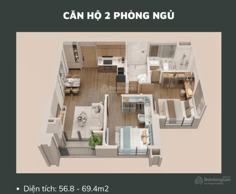 - Căn 2PN & 3PN (60 đến 89m²) cho gia đình nhỏ, bố trí hợp lý phòng khách nối liền bếp, logia tách biệt.
