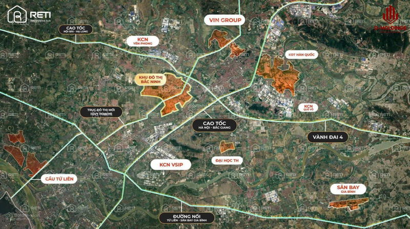 Đường Vành Đai 4, Bắc Giang (khu vực lân cận) 50 – 65 35 – 50 Hạ tầng đang phát triển, ít dự án dân cư mới