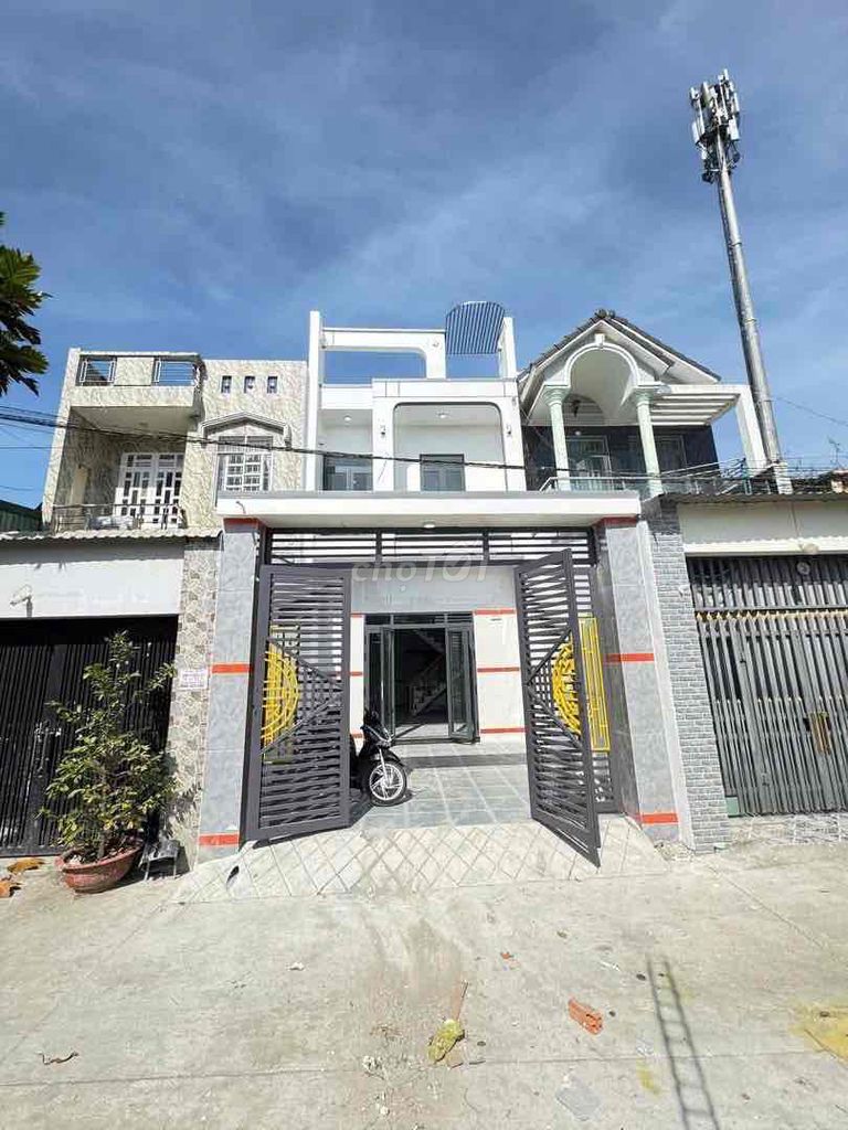 Nhà diện tích 5x20m (100m²), xây 1 trệt 1 lầu với 3 phòng ngủ, 2 WC, sân để xe hơi, phòng thờ, bếp, khách tại Khánh Bình, Tân Uyên, Bình Dương đang được rao bán với giá 2,85 tỷ đồng, tương đương 28,5 triệu/m² diện tích sử dụng.