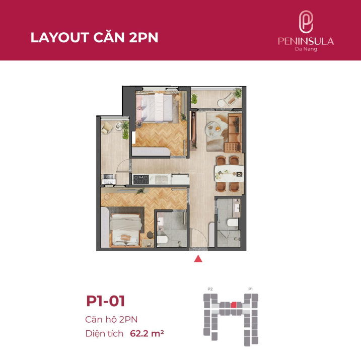 Nhận định về mức giá 3,84 tỷ cho căn hộ Peninsula 2 phòng ngủ, diện tích 61,8 m² tại Đà Nẵng