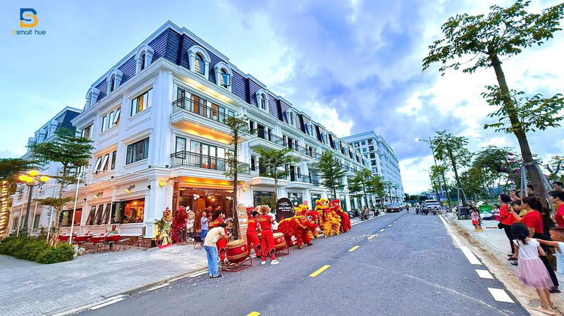 Loại hình và diện tích Shophouse nhà mặt phố 4 tầng, diện tích đất 126 m² (6x21m), diện tích sàn 382 m², 5 phòng ngủ Nhiều sản phẩm shophouse tại Huế có diện tích đất ~100-150 m², giá trung bình từ 40-50 triệu/m² diện tích sàn Diện tích lớn và thiết kế nhiều tầng, có thang máy, hai lối đi riêng biệt là điểm cộng giá trị.