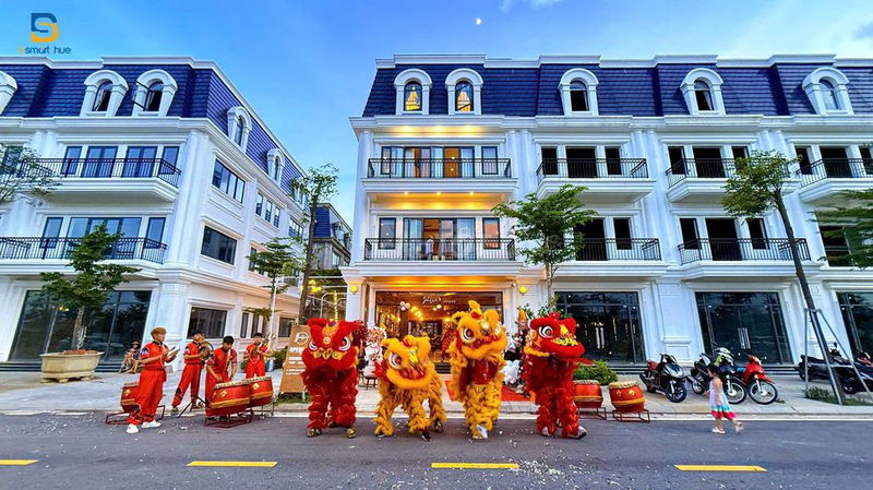 Loại hình và diện tích Shophouse nhà mặt phố 4 tầng, diện tích đất 126 m² (6x21m), diện tích sàn 382 m², 5 phòng ngủ Nhiều sản phẩm shophouse tại Huế có diện tích đất ~100-150 m², giá trung bình từ 40-50 triệu/m² diện tích sàn Diện tích lớn và thiết kế nhiều tầng, có thang máy, hai lối đi riêng biệt là điểm cộng giá trị.