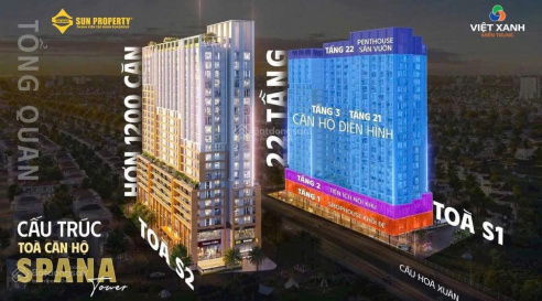 | Sun Spana Tower (Spana Tower) | 54 | 2PN, cơ bản | 3,1 | ~57,4 | Hoàn thiện cơ bản, sổ đỏ lâu dài, tiện ích cao cấp |