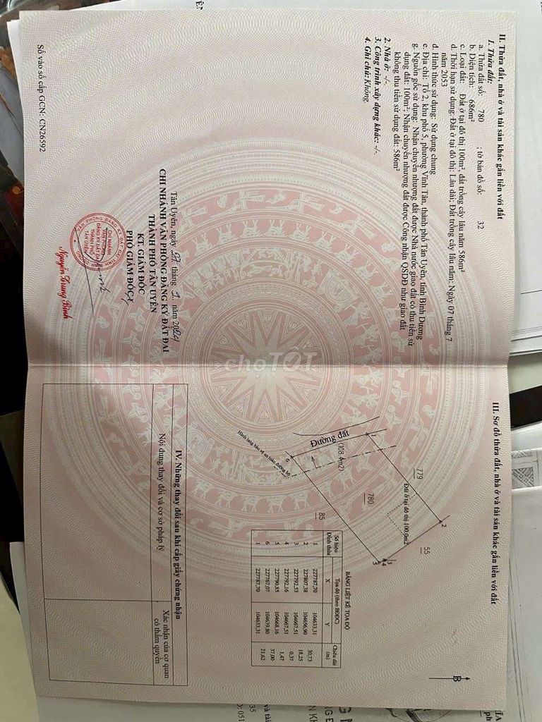 Loại đất Đất thổ cư, diện tích 686 m², đã có sổ đỏ Pháp lý rõ ràng, thuận lợi cho xây dựng nhà ở hoặc đầu tư dài hạn.