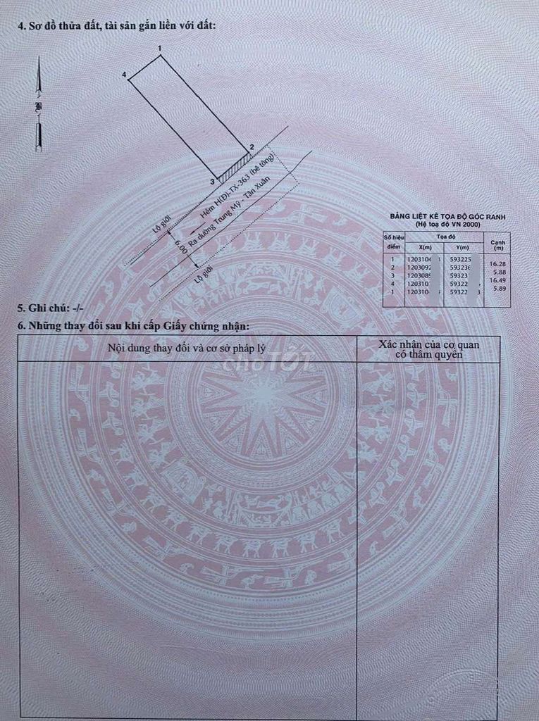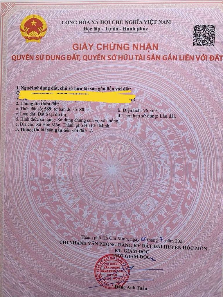 Tân Xuân, Hóc Môn (lô đất hiện tại) 96,3 3,75 38,94 Hẻm ôtô, đất thổ cư, full thổ, sổ hồng riêng 2024