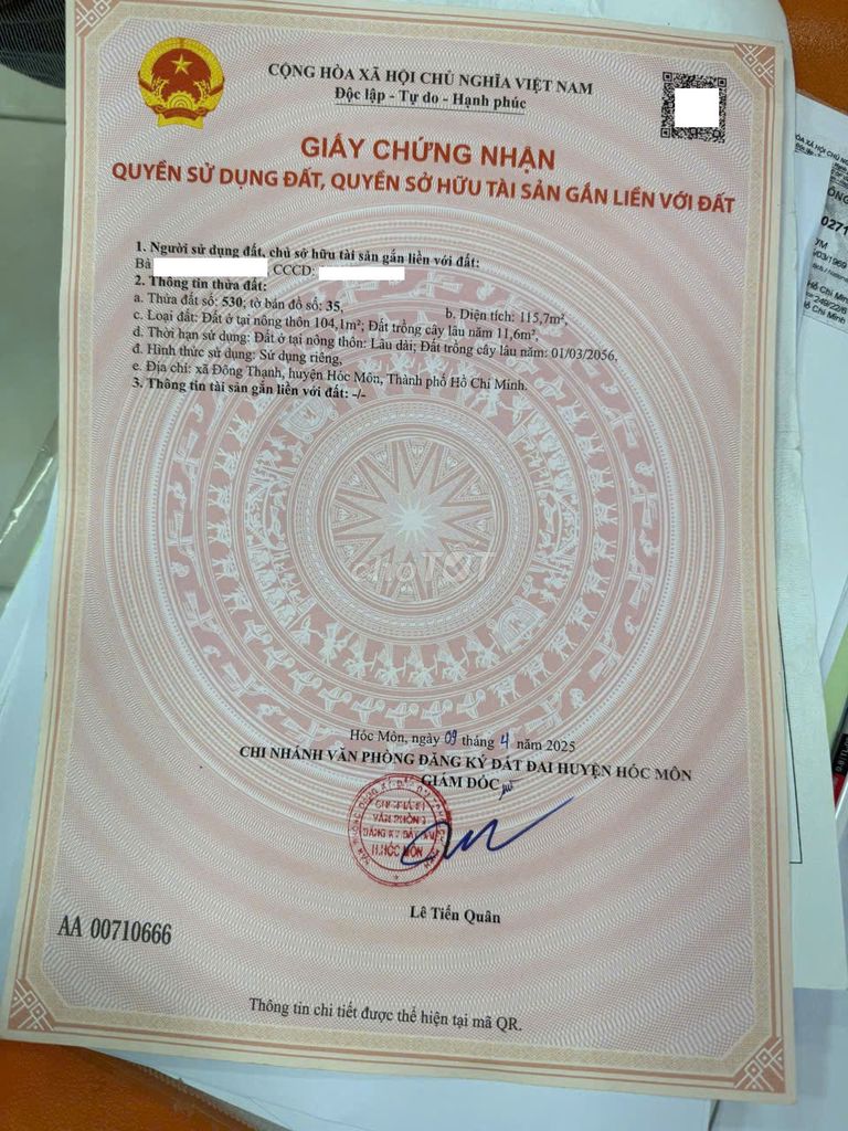 - Đất đã có sổ hồng riêng, full thổ cư, pháp lý rõ ràng, giúp giao dịch nhanh chóng, an tâm cho người mua.