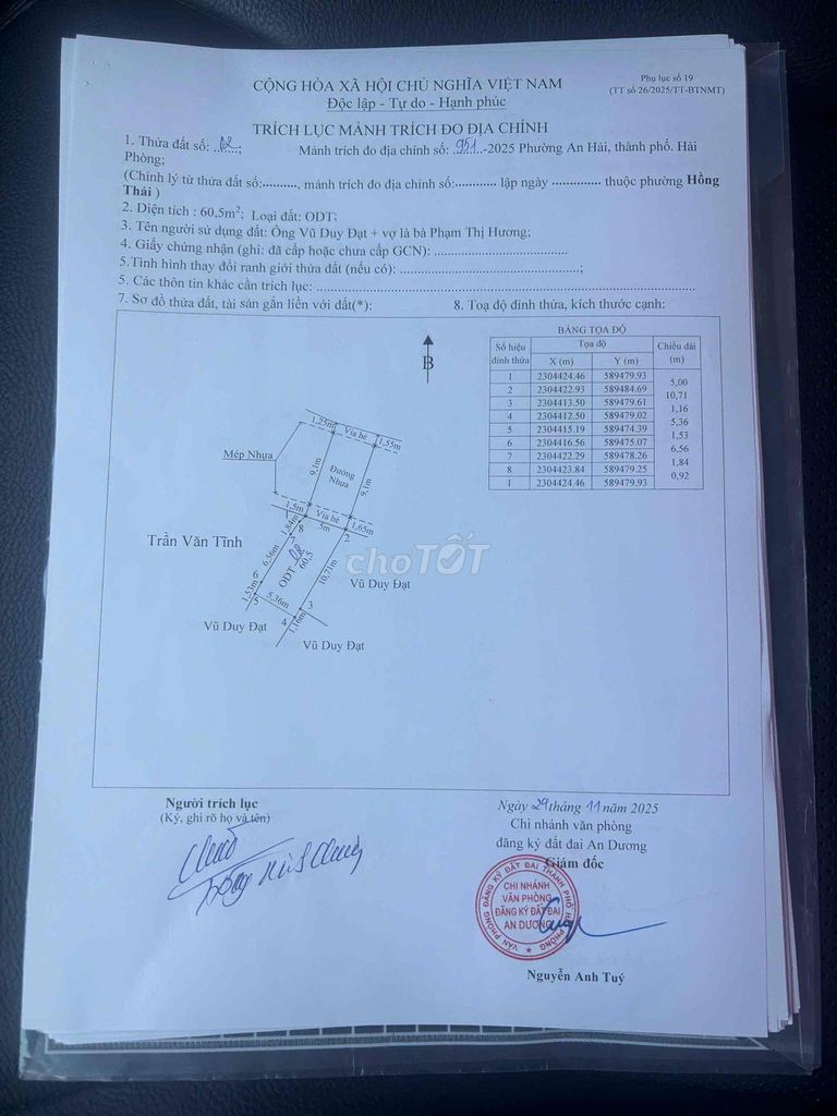 | Đào Yêu, Hồng Thái, An Dương (bất động sản đề cập) | 60 | 33,33 | 2,0 | Mặt trục đường nhựa 12m, nở hậu, đang chờ sổ riêng |