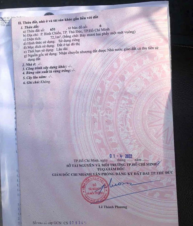 | Đường Ngô Chí Quốc, P. Bình Chiểu | 72 | 50 | 3,6 | Hạ tầng hoàn thiện, khu phân lô đồng bộ |