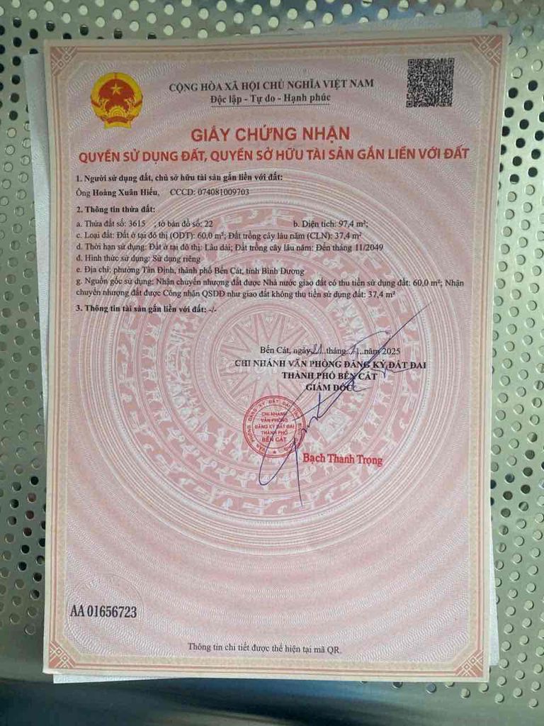 Diện tích 97m2 đã lên 60m2 thổ cư. xây dựng tự do