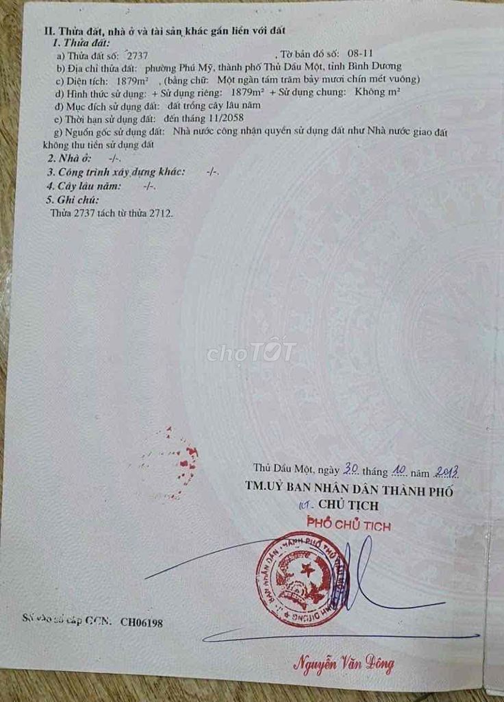 | Đường ĐX 014, Phú Mỹ, Thủ Dầu Một | Đất thổ cư, mặt tiền | 1879 | 10,64 | 20 | Giá đề xuất, đã có sổ |