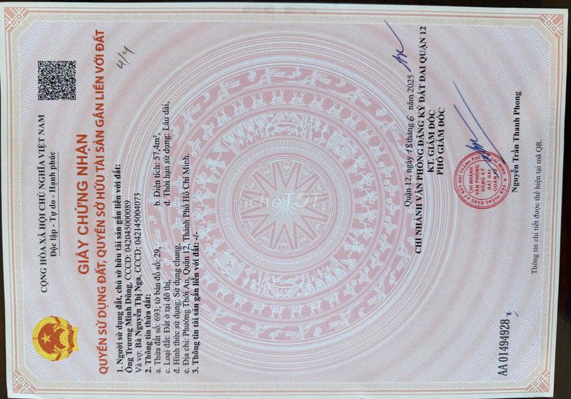 | Quận 12, đường Trần Thị Cờ (lô đất phân tích) | 57 | 4,45 | 78,07 | Đất thổ cư, hẻm xe hơi, sổ hồng riêng |