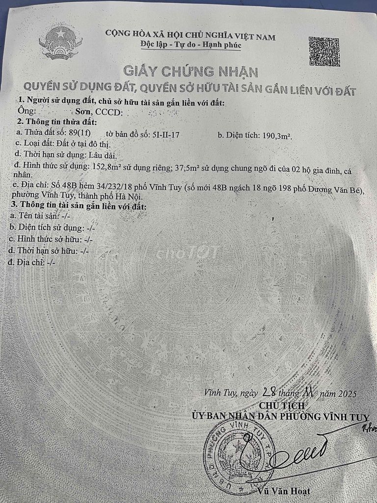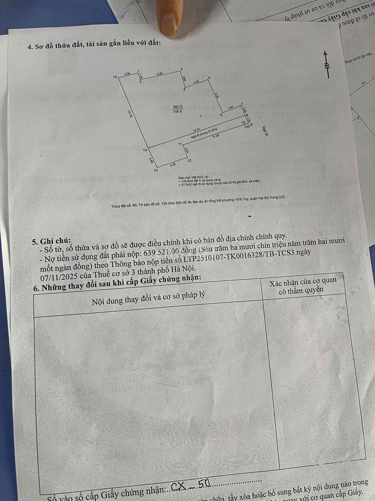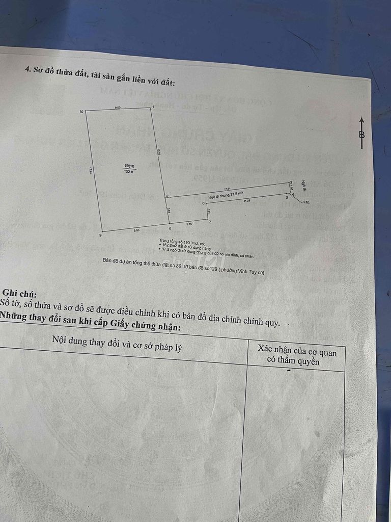 Mảnh đất được rao bán với diện tích 152,8 m², tọa lạc tại vị trí gần Time City – khu vực trung tâm của Quận Hai Bà Trưng, Hà Nội. Giá bán được đưa ra là 15 tỷ đồng, tương đương khoảng 98,17 triệu đồng/m². Mảnh đất có pháp lý rõ ràng, sổ đỏ đầy đủ, chiều ngang 9 m và chiều dài 17,23 m, thuộc loại đất thổ cư.