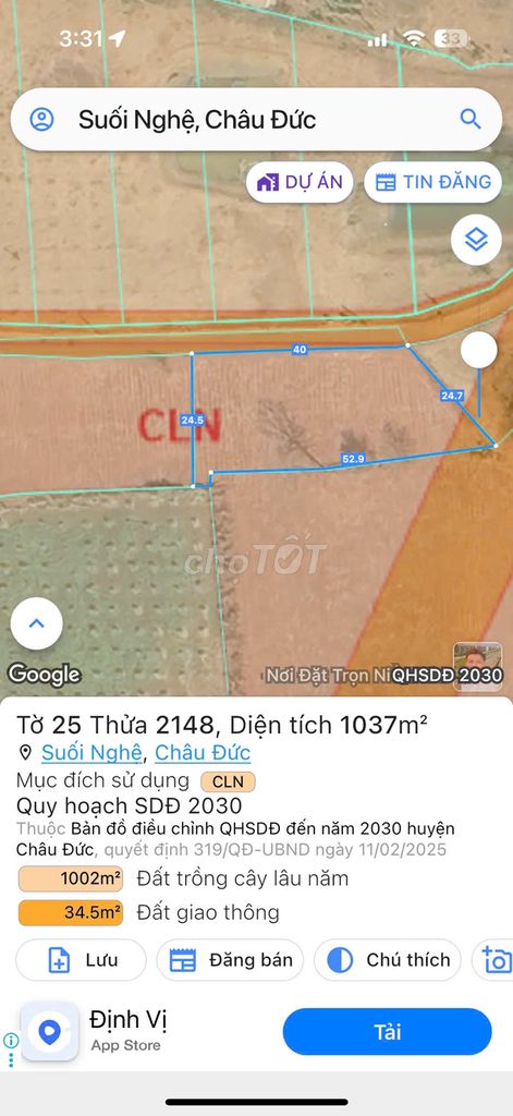 | Xã Suối Nghệ, Huyện Châu Đức | Đất nông nghiệp, mặt tiền đường nhựa | 2970 | 1,62 | 4,8 | Cách trung tâm xã 2 km, gần cao tốc, đã có sổ |