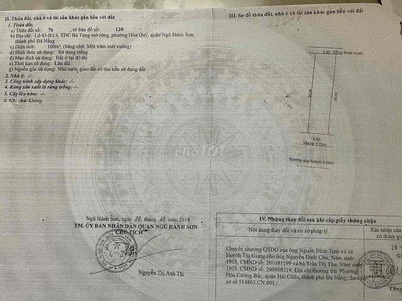 Lô đất nền dự án diện tích 100 m² (5m x 20m) tại Phường Hòa Quý, Quận Ngũ Hành Sơn, Đà Nẵng đang được chào bán với giá 3,8 tỷ VNĐ, tương đương 38 triệu/m². Đây là mức giá khá cao so với mặt bằng chung đất nền dự án cùng khu vực, tuy nhiên điều này còn phụ thuộc vào nhiều yếu tố khác như vị trí cụ thể, tiện ích liền kề, pháp lý và tiềm năng phát triển trong tương lai.