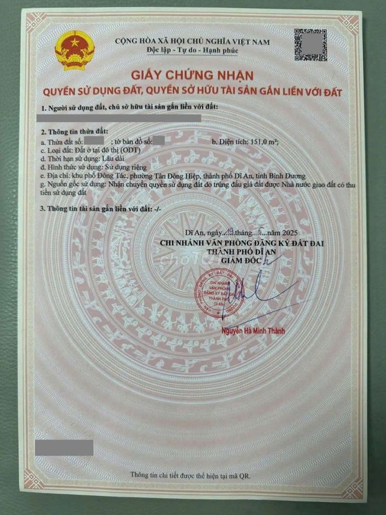 | Phường Tân Đông Hiệp, Dĩ An | 151 | 41,72 | 6,3 | 2 mặt tiền, đường rộng 12m, gần QL1K, sổ hồng riêng |