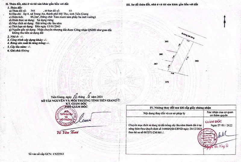 Xã Trung An, Mỹ Tho (đất thổ cư, mặt tiền hẻm xe hơi) 100 1,200 12,00 Đất thổ cư Giao dịch Q1/2024