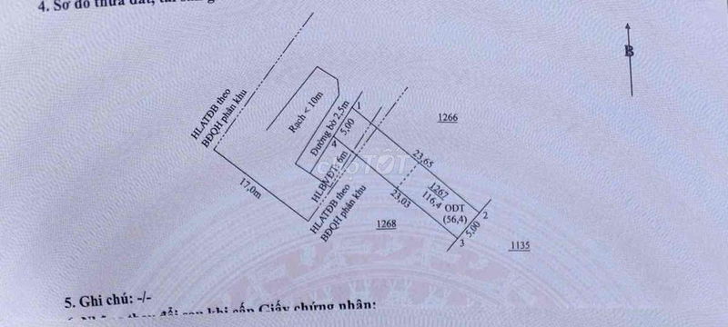 - Nhấn mạnh yếu tố mặt tiền chỉ 5m, ít thuận lợi hơn so với các lô đất mặt tiền lớn.