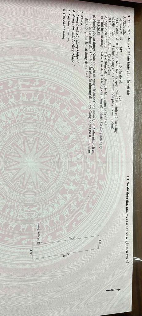 Đường Nguyễn Như Đổ, Hòa Thọ Tây, Cẩm Lệ 84 1,92 22,86 Đất thổ cư, mặt tiền 4m, hẻm xe hơi, sổ đỏ đầy đủ 2024