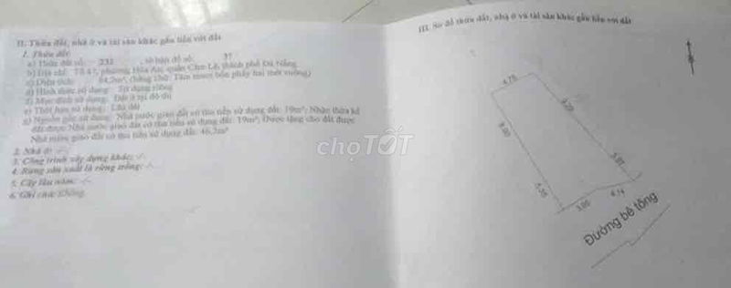 • Diện tích đất