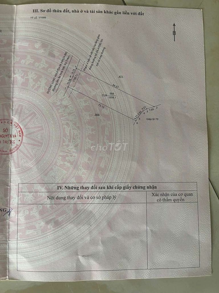 Diện tích đất thực tế là 1.558 m², giá chào bán là 2,8 tỷ đồng, tương đương khoảng 1,80 triệu đồng/m². Đây là mức giá khá chuẩn cho loại đất nông nghiệp mặt tiền tại khu vực xã Long Nguyên, huyện Bàu Bàng, Bình Dương, đặc biệt gần KCN Bàu Bàng – khu vực đang có nhiều sự phát triển công nghiệp và hạ tầng.
