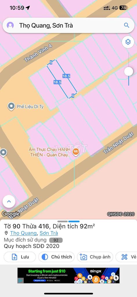 Đường Thành Vinh 4, Sơn Trà 92 m² 75,98 6,99 Mặt tiền, đất thổ cư, có sổ