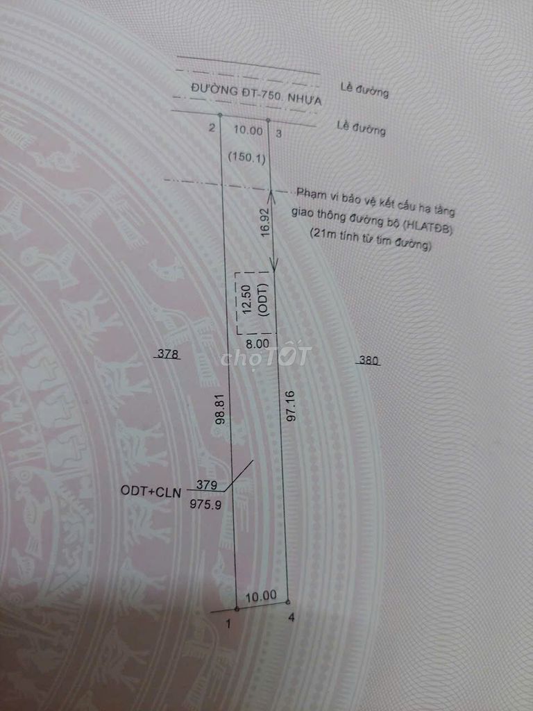 Với diện tích 975 m², chiều ngang 10 m, chiều dài 95 m và giá đề xuất là 4,9 tỷ đồng, tương đương khoảng 5,03 triệu đồng/m², đây là mức giá được đưa ra cho lô đất mặt tiền đường DT 750. Đất có sổ hồng, đã chuyển đổi 100 m² thổ cư, thuận tiện kinh doanh buôn bán, thuộc loại đất thổ cư mặt tiền có hướng Bắc.