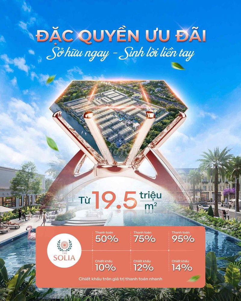 | Tiêu chí | Phân khu Athena (The Solia) | Đất thổ cư khu vực Bến Lức (trung bình) | Ghi chú |