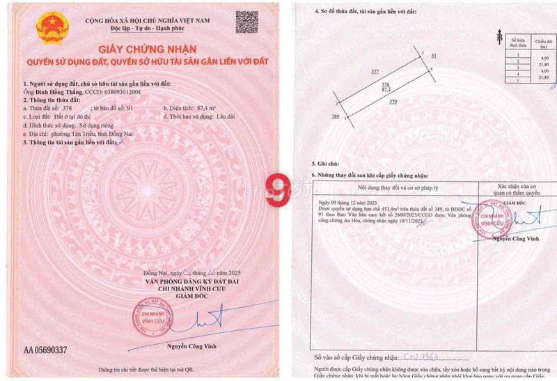- Loại đất và pháp lý: Đất thổ cư, đã có sổ hồng riêng, đảm bảo tính pháp lý rõ ràng, giúp giảm thiểu rủi ro pháp lý cho người mua.