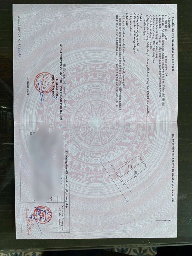 | Bắc Hạ, Xã Quang Tiến, Sóc Sơn | Đất thổ cư | 90 | 34,33 | 3,09 | Đã có sổ, mặt tiền, hẻm xe hơi, nở hậu, không quy hoạch |