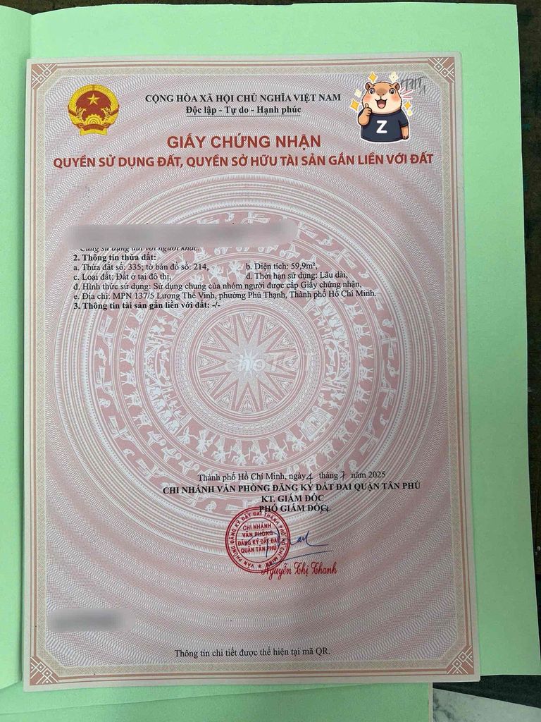 Nhận định về mức giá 5,35 tỷ đồng cho lô đất 63 m² tại Đường Lương Thế Vinh, Quận Tân Phú
