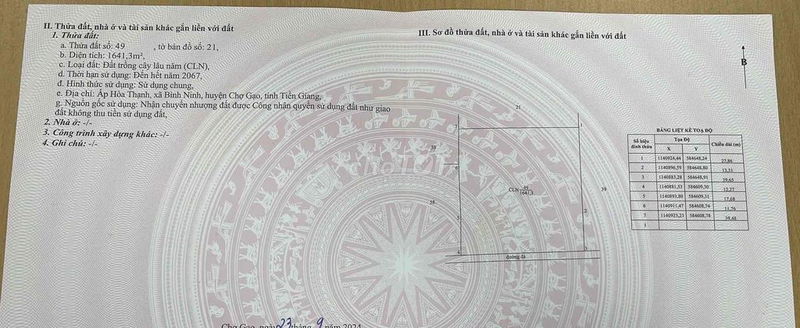 • Diện tích đất