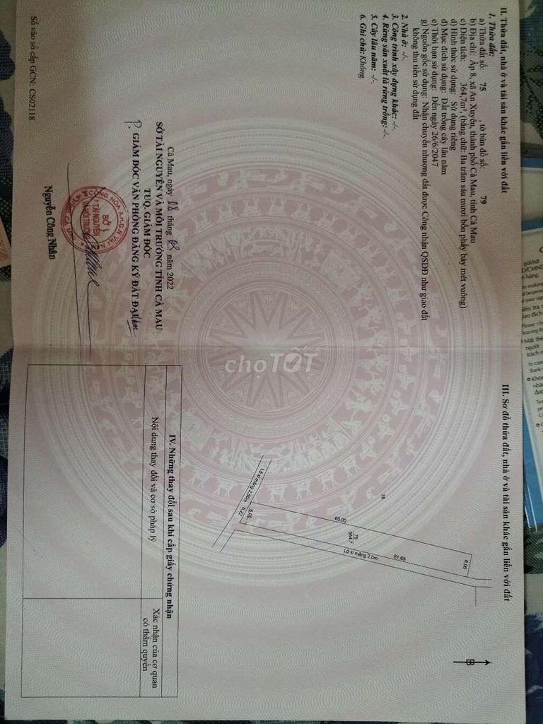 - Vị trí: Cách trung tâm thành phố Cà Mau 3.5 km, đất giáp hai mặt lộ (mặt 6m giáp lộ nhựa, mặt 60m giáp lộ bê tông)