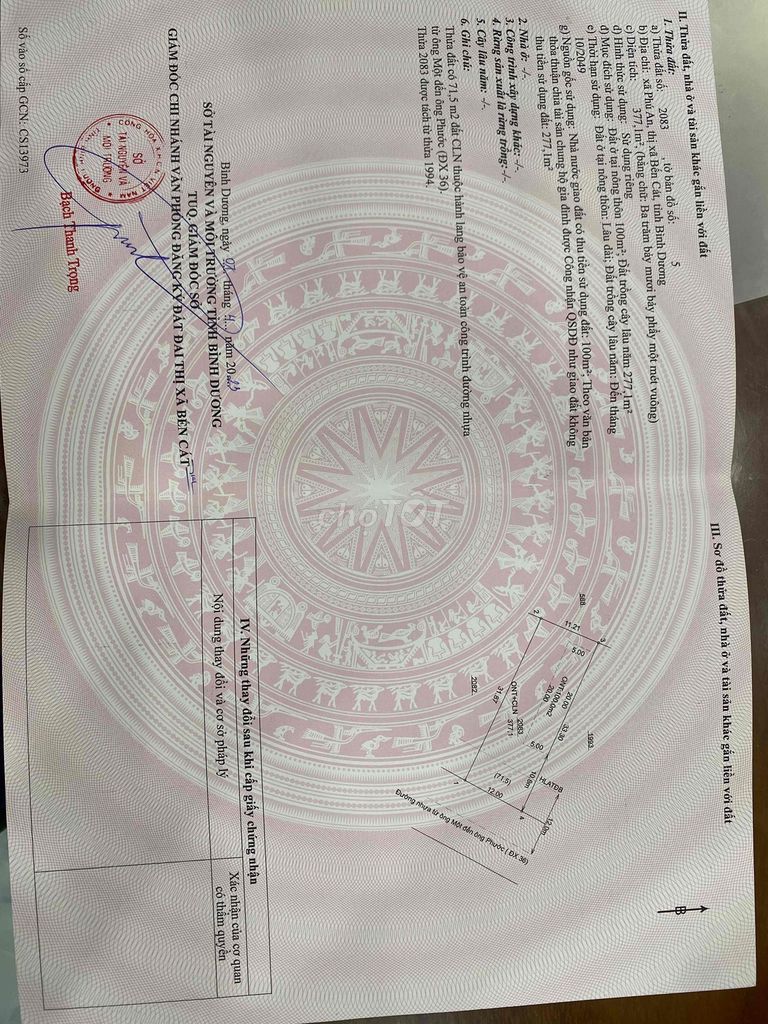 | Phú An, Bến Cát | Đất thổ cư, mặt tiền | 377 | 10.34 | 3.9 | Giá chào bán hiện tại |