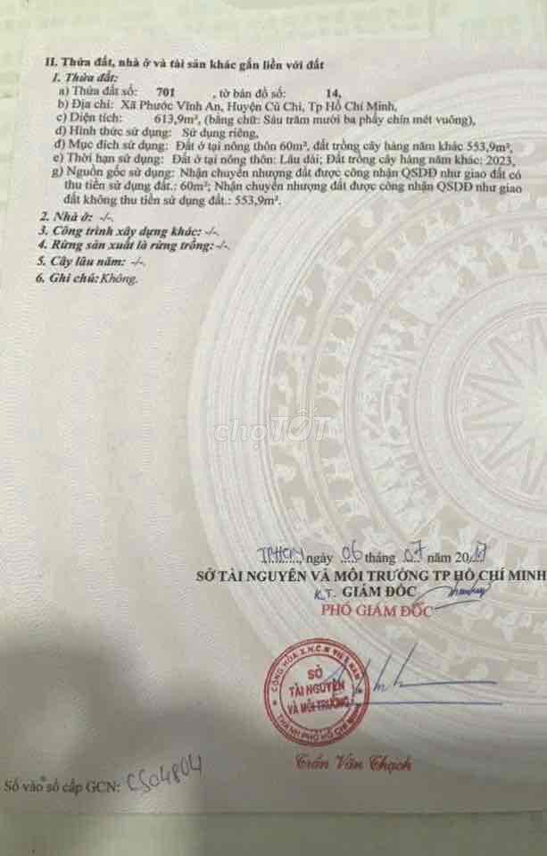 | Vị trí | Xã Phước Vĩnh An, huyện Củ Chi | Huyện Củ Chi | Vị trí cách trung tâm TP HCM khá xa, giá mềm hơn so với các khu vực gần trung tâm. |