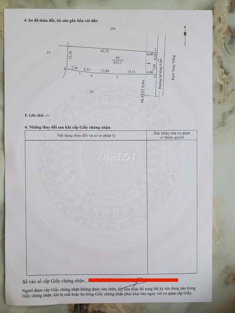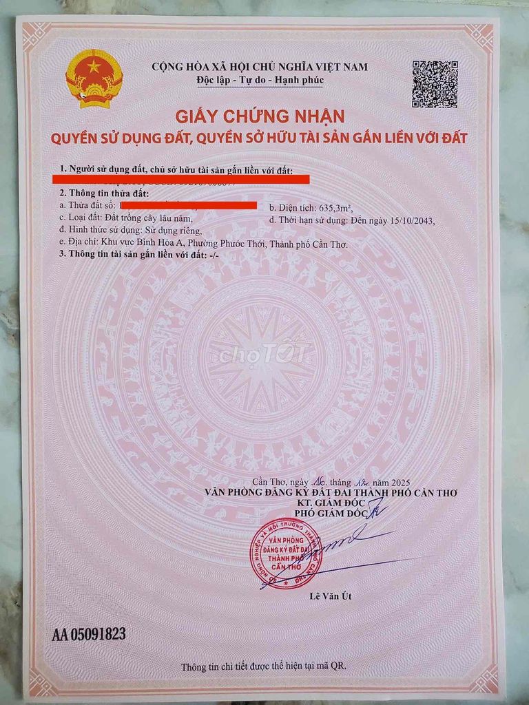 | Bình Hoà A, Phường Phước Thới, Ô Môn, Cần Thơ | Đất nông nghiệp | 635,3 | 3,94 | 2,5 | Mặt tiền sông, hẻm xe hơi, lộ giới 5m, sổ hồng | 2024 |