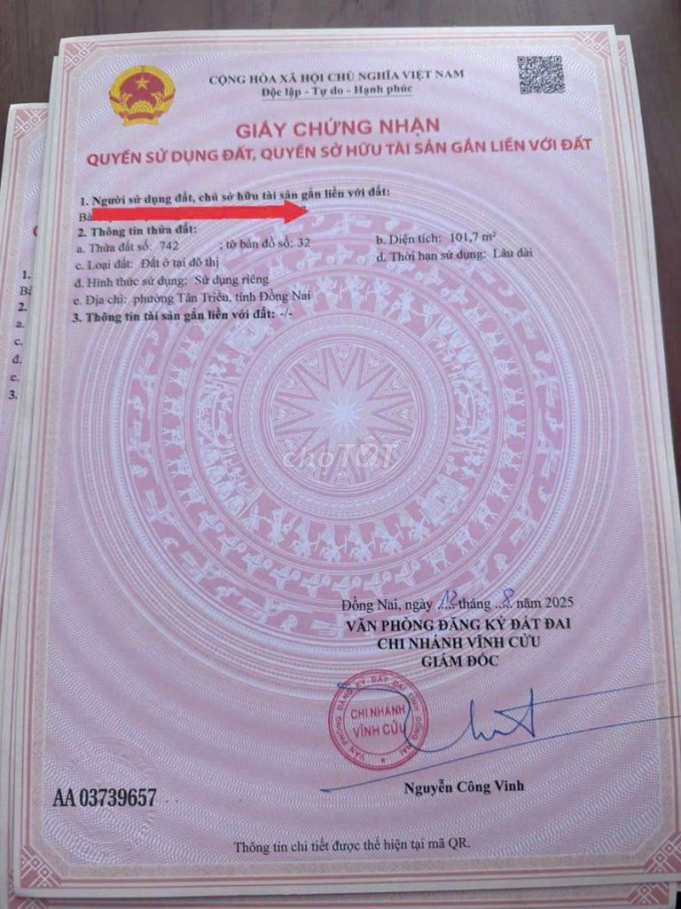 | Vị trí | Xã Thạnh Phú, Huyện Vĩnh Cửu, Đồng Nai; hẻm ô tô, gần chợ Thạnh Phú, cạnh Lavender | Đất thổ cư vùng huyện Vĩnh Cửu thường có giá dao động từ 3-5 triệu đồng/m² tùy vị trí và giao thông. | Vị trí khá thuận tiện, có hẻm xe hơi ra vào, gần chợ, phù hợp cho nhu cầu ở hoặc đầu tư nhỏ lẻ. |