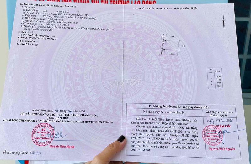 - Kiểm tra quy hoạch sử dụng đất chi tiết tại Phòng Tài nguyên & Môi trường Huyện Diên Khánh, đảm bảo không nằm trong khu vực quy hoạch công trình công cộng hoặc hành lang giao thông.