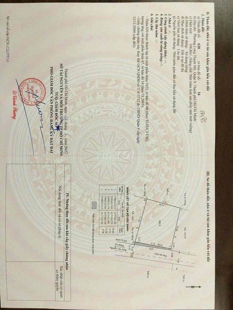 Đường Nguyễn Văn Tăng, Phường Long Thạnh Mỹ 120 4,2 35 Đất thổ cư, hẻm xe máy, có sổ 2024