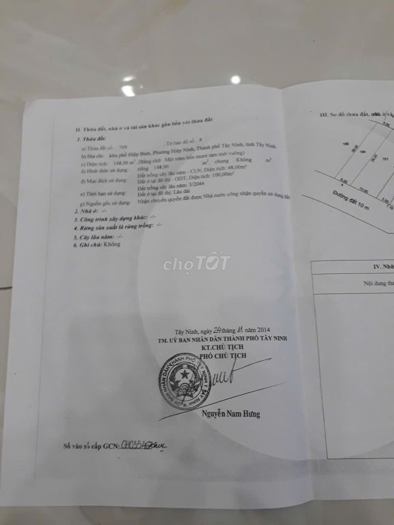 | Hẻm 75, Đường CMT8, TP Tây Ninh | Đất thổ cư | 148 | 13,51 | 2,0 | Giá chào bán |