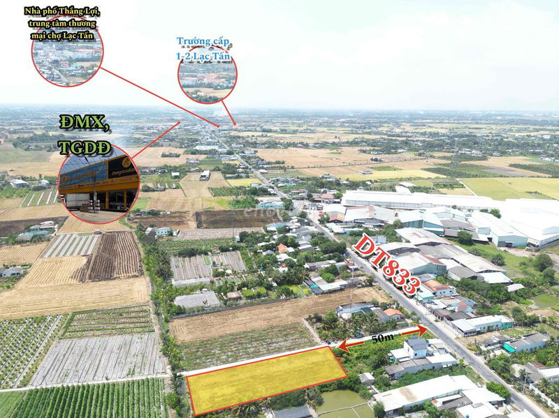 | Vị trí | Gần đường tỉnh 833, sát ủy ban xã, tiện ích xung quanh | Gần đường lớn, chợ, trường học |