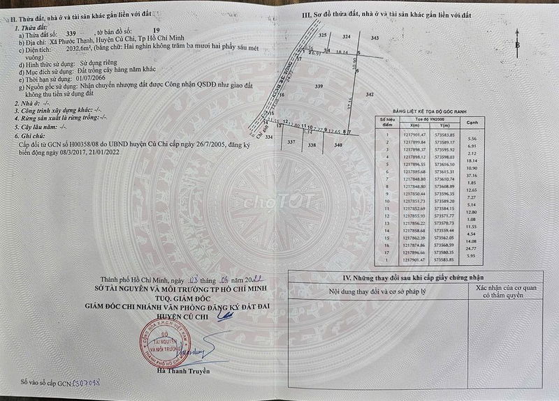 | Đất nông nghiệp | Củ Chi, gần đường lớn, chưa thổ cư | 2032 | 1,60 | 3,251 | Giá hiện tại, có sổ, hẻm xe hơi |